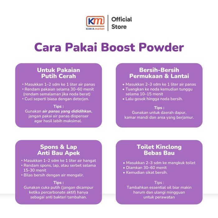 | Fungsi Utama | – Pembersih kuat – Pemutih alami (oxygen bleach) – Penghilang noda membandel – Penetralisir bau |