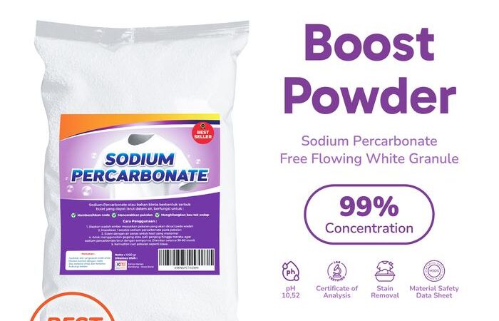 | Keunggulan | – Ramah lingkungan (terurai menjadi air, oksigen, dan soda ash) – Aman untuk berbagai permukaan – Tanpa klorin (non-bleach) |