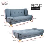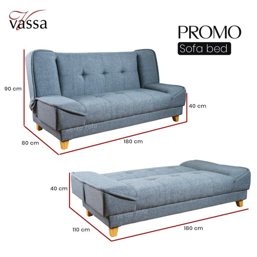 | Dimensi | – Sofa: 80×180×40 cm (dalam mode duduk) – Bed: 180×110×90 cm (dalam mode tidur) |