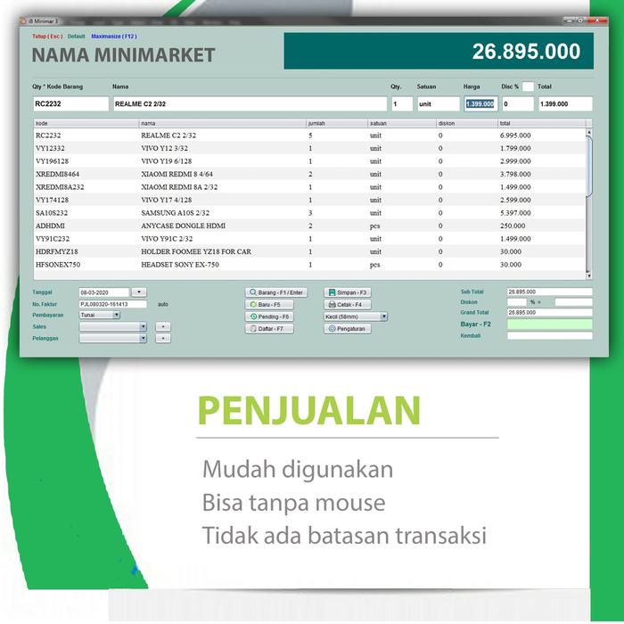 Dikirim dalam bentuk CD atau Flashdisk, software ini siap digunakan segera setelah instalasi tanpa proses setting yang rumit. Terbukti handal menangani lebih dari 10.000 transaksi per hari dengan stabil. Antarmuka yang user-friendly memudahkan operasi bahkan untuk pengguna awam.