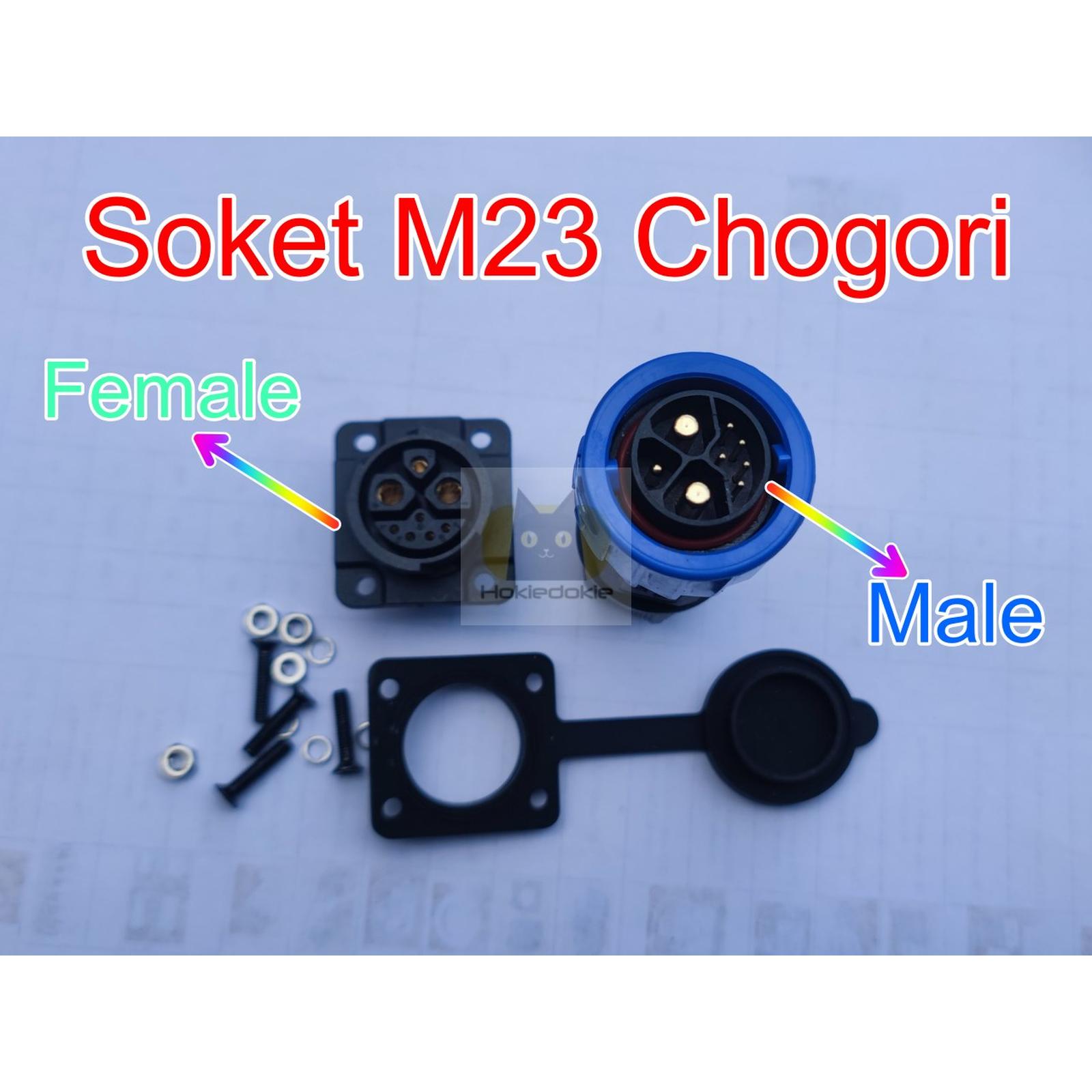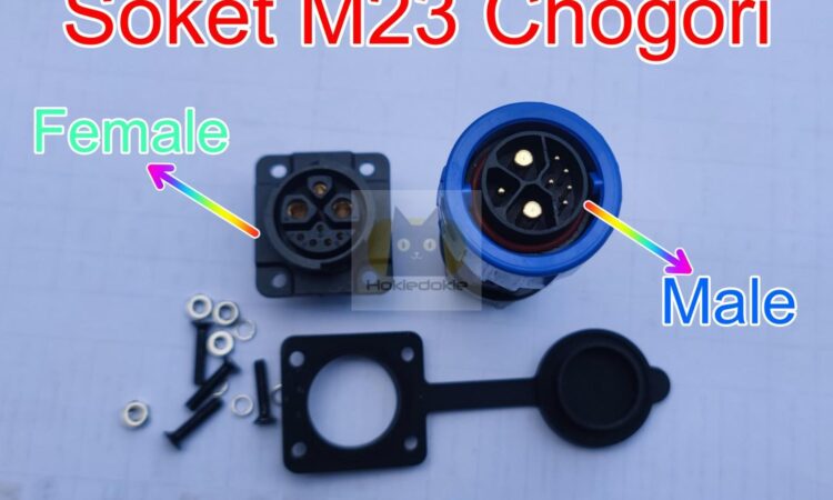 Soket M23 Chogori merupakan komponen konektor berdaya tinggi yang dirancang khusus untuk sistem kelistrikan motor listrik modern. Soket ini memiliki rating arus maksimal hingga 50 Ampere, menjadikannya solusi ideal untuk menghubungkan baterai ke motor penggerak pada berbagai merek skuter dan motor listrik ternama seperti Gesits, Fox R, Viar, dan lainnya.
