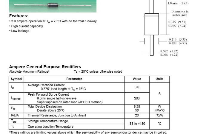 - Paket DO-201: Standar bentuk fisik dan ukurannya, komponen elektronik tetap dan konsisten untuk pemasangan pada papan sirkuit.