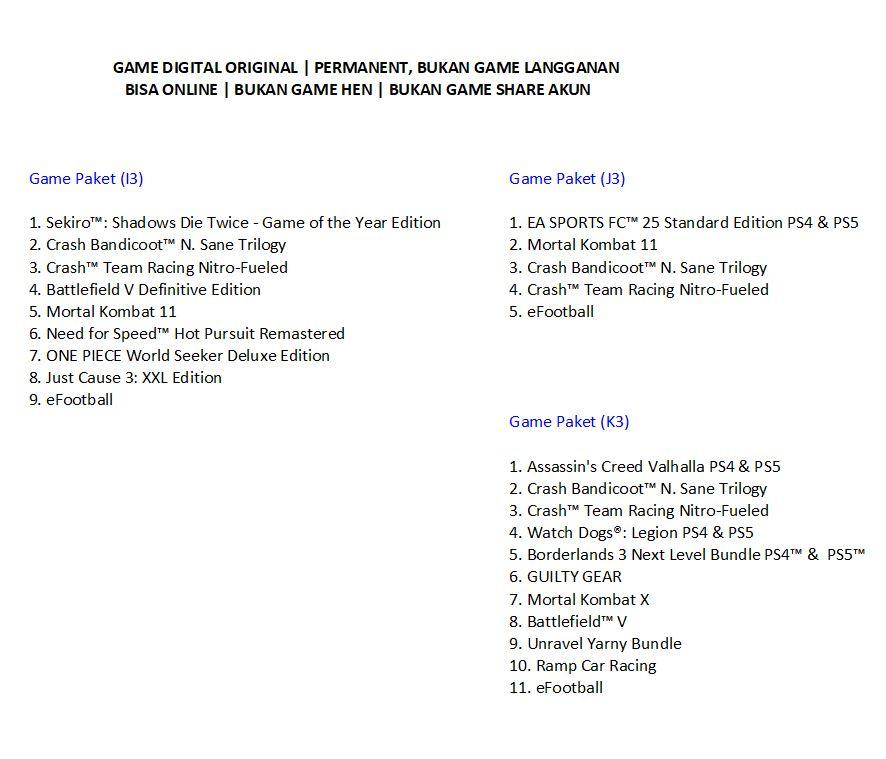 | + Game Permanent | Game digital original (bukan langganan PS+/EA Play). Akun login disertakan. |