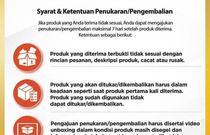 4. Pengembalian hanya diterima untuk barang yang masih tersegel dan belum digunakan, akibat kerusakan atau kesalahan kirim.