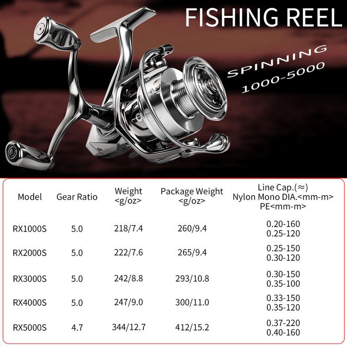 Power Handle two-way memudahkan Anda menggulung dengan kedua tangan, mengurangi kelelahan saat bertarung dengan ikan besar. Tersedia dalam berbagai ukuran (1000, 2000, 3000, 4000, 6000) untuk disesuaikan dengan jenis umpan, tali, dan target ikan yang berbeda.
