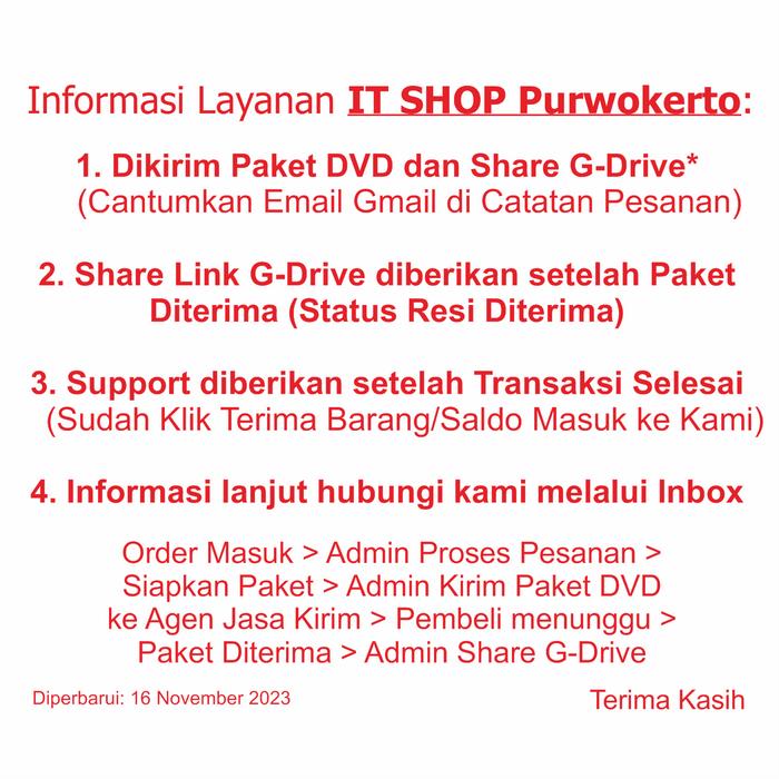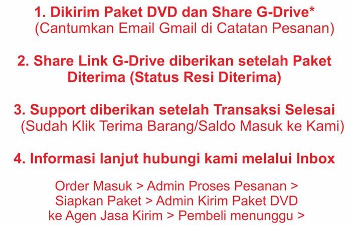 2. Link Download akan dibagikan via email setelah paket DVD dikirim dan dalam perjalanan menuju kota tujuan.