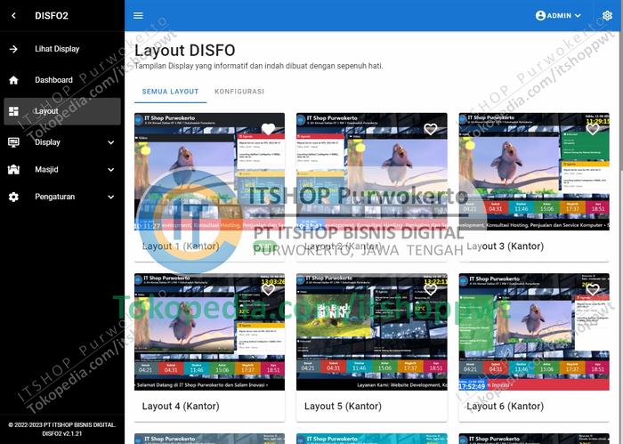 • DISFO: Digital Information Display, suatu sistem layar tampil yang digunakan untuk menyajikan informasi digital seperti pengumuman, jadwal, atau berita.