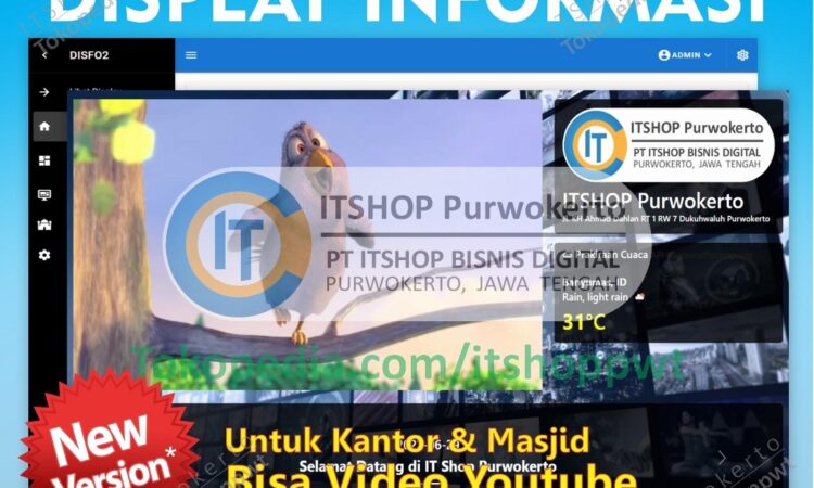 Tampilan InformasiMenampilkan informasi dalam format Video (Youtube/MP4), Gambar, dan Teks secara dinamis.