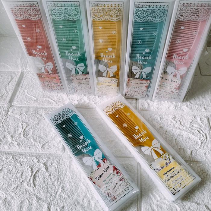 Tinggalkan kesan mendalam bagi tamu undangan dengan souvenir yang unik dan fungsional. Setiap set berisi 50 sisir mini yang praktis, dikemas rapi dalam mika transparan bermotif cantik dan sudah dilengkapi dengan kartu ucapan terima kasih. Cocok untuk pernikahan, khitanan, ulang tahun, atau acara perusahaan.