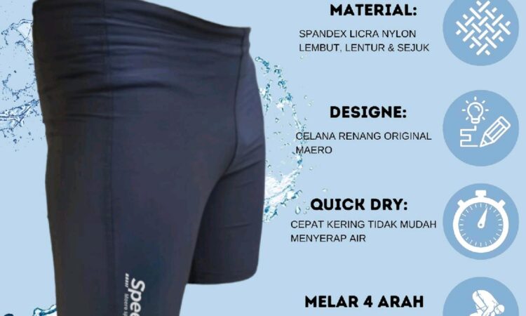 | Bahan | Spandek Lycra 100% premium, sangat elastis dan nyaman untuk aktivitas renang maupun olahraga air lainnya. |