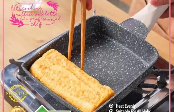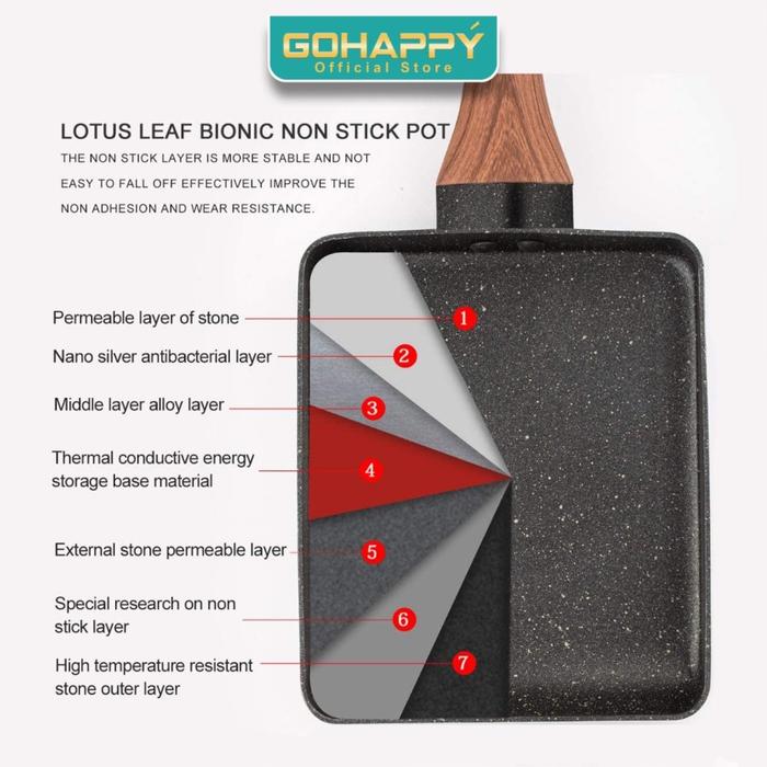 Wujudkan omelet ala chef profesional di rumah Anda dengan Gohappy Cetakan Telur Tamagoyaki. Peralatan masak mewah yang sangat populer di Jepang ini didesain khusus untuk membuat tamagoyaki yang sempurna. Terbuat dari material aluminium marble tebal dengan lapisan anti-lengket dan anti-karat, wajan ini menghantarkan panas secara sempurna dan merata ke seluruh bagian. Body wajan 50% lebih ringan dari peralatan masak aluminium biasa, membuatnya nyaman digunakan.
