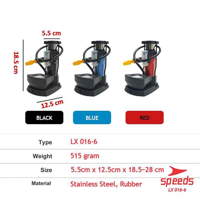 Dengan konstruksi aluminium alloy yang kokoh namun ringan, Speeds Pompa Angin Portable menjamin ketahanan dan performa tinggi. Lengkapi perlengkapan bersepeda Anda dengan alat yang andal dan efisien.