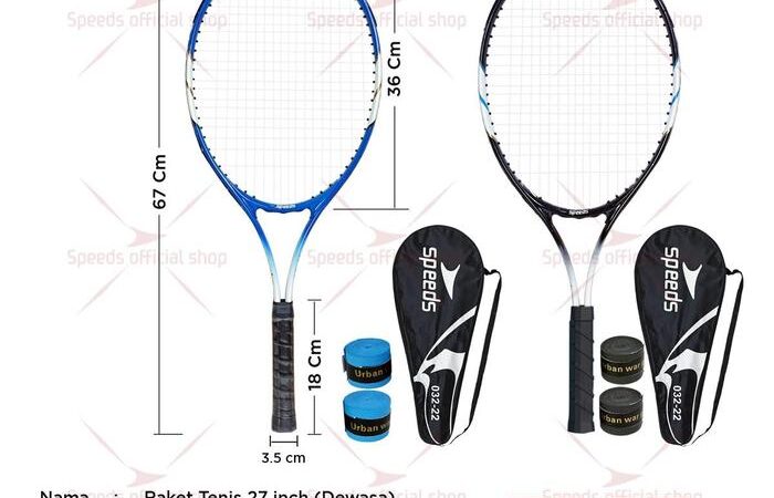 | Raket Tenis Dewasa | Ukuran 27 inci, frame karbon ringan, pegangan kulit sintesis nyaman. |