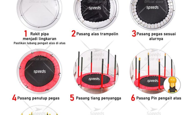 | Bahan | Alas lompat: PP, Cover: PP/PVC, Rangka: Besi |