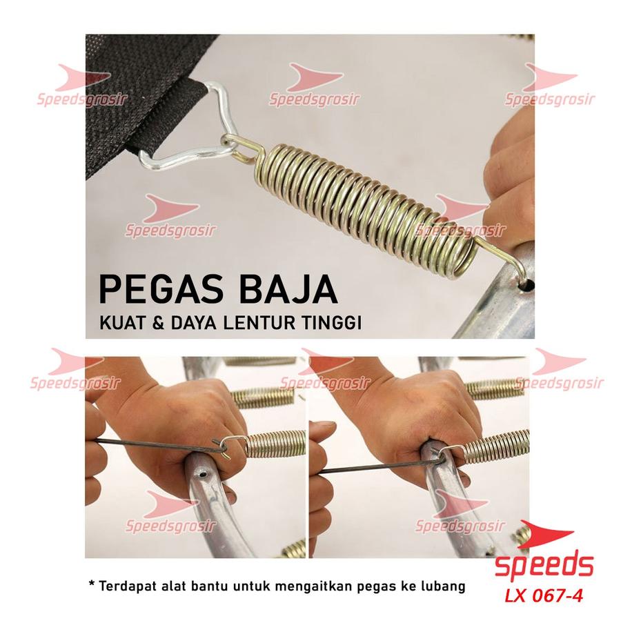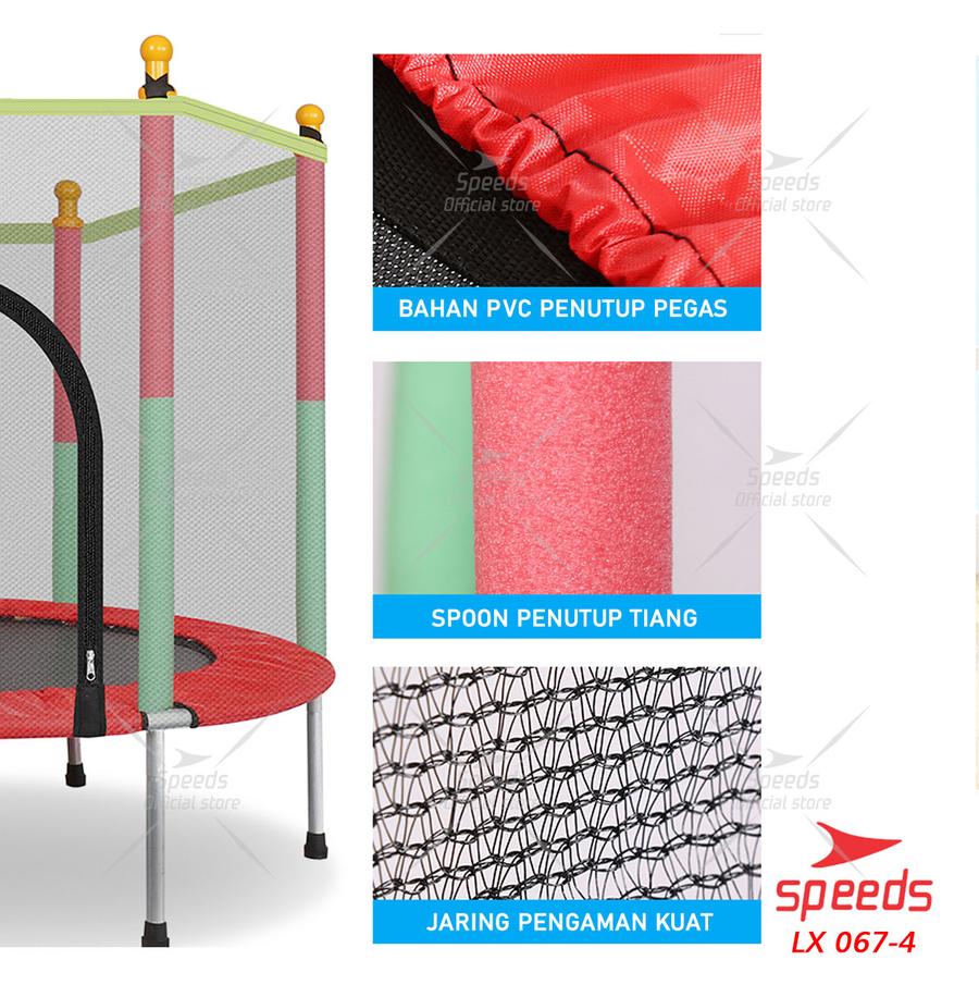 | Bahan | Alas lompat: PP, Cover: PP/PVC, Rangka: Besi |