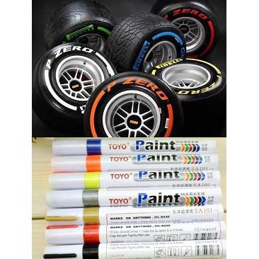 Tire Marker: Spidol khusus yang dirancang untuk menulis atau mewarnai pada permukaan karet ban. Formulanya dirancang agar tinta dapat melekat dengan baik pada tekstur ban yang kasar dan tahan terhadap cuaca serta gesekan.
