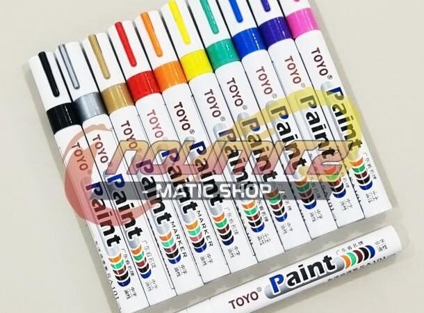 Tingkatkan penampilan motor Anda dengan Spidol Marker Ban Toyo ORI. Produk 100% original dari Jepang ini dirancang khusus untuk memberikan hasil tulisan yang presisi, tajam, dan tahan lama pada sisi samping ban berbagai tipe motor.