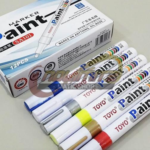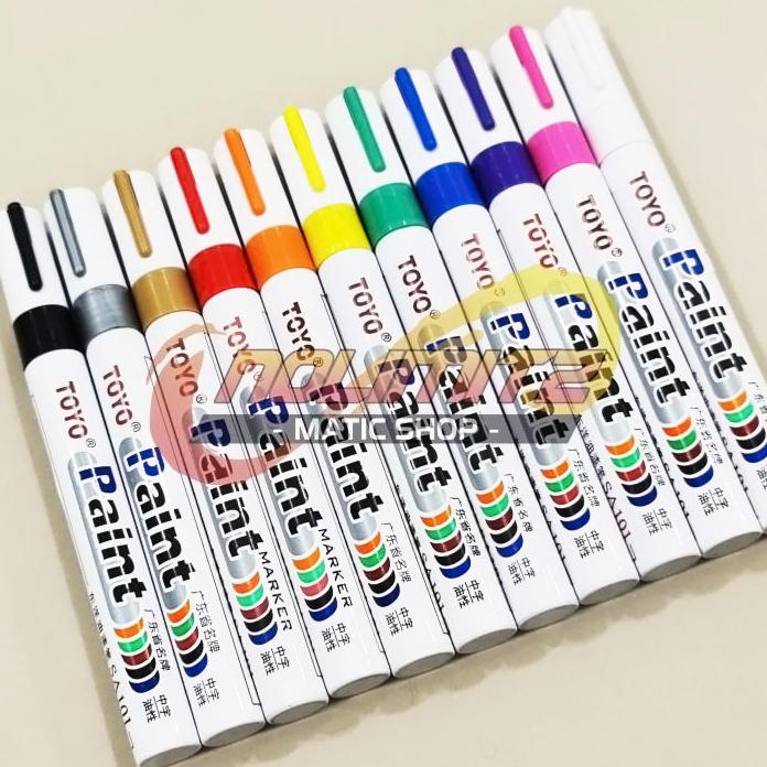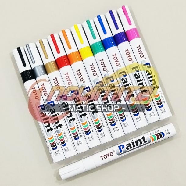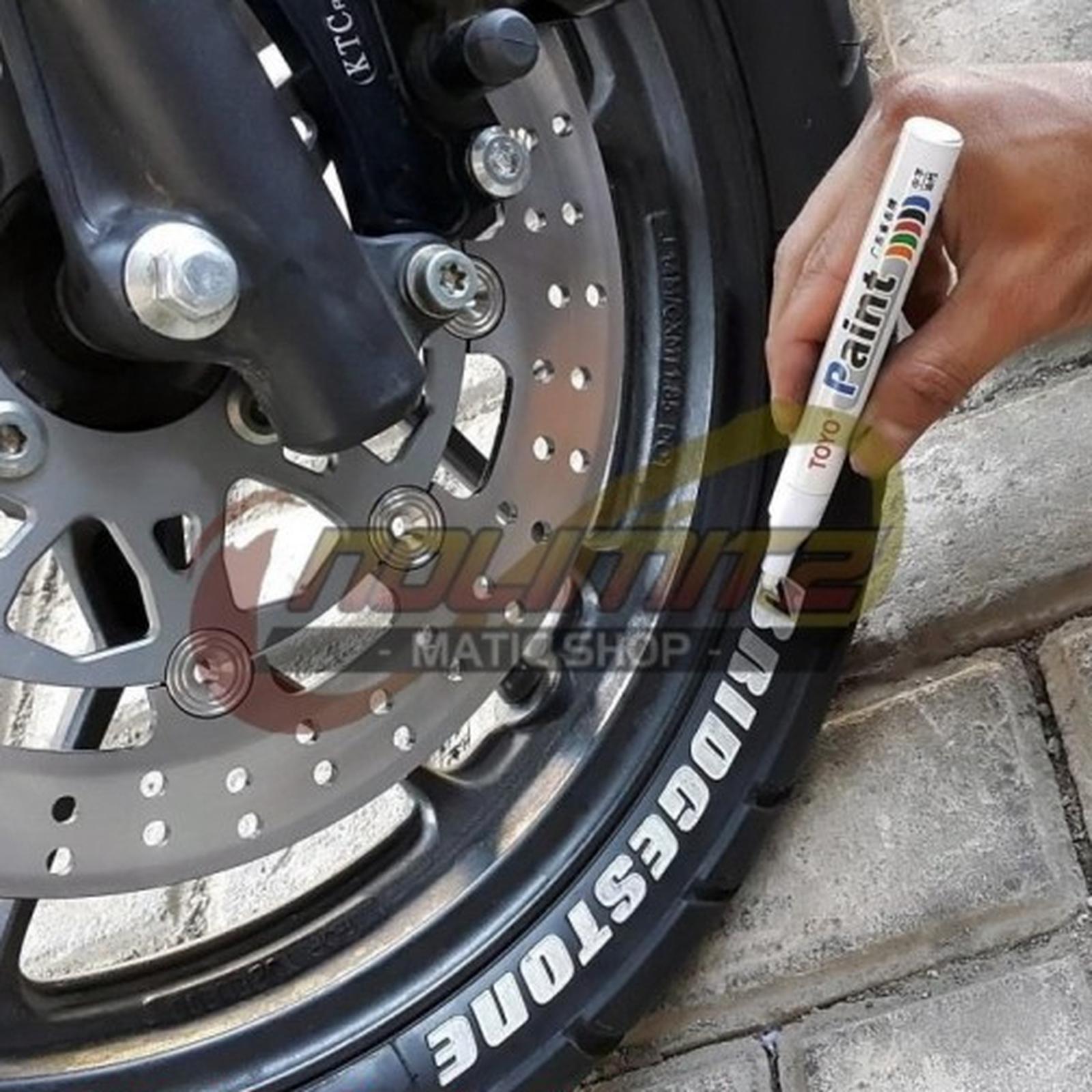 Tingkatkan penampilan motor Anda dengan Spidol Marker Ban Toyo ORI. Produk 100% original dari Jepang ini dirancang khusus untuk memberikan hasil tulisan yang presisi, tajam, dan tahan lama pada sisi samping ban berbagai tipe motor.