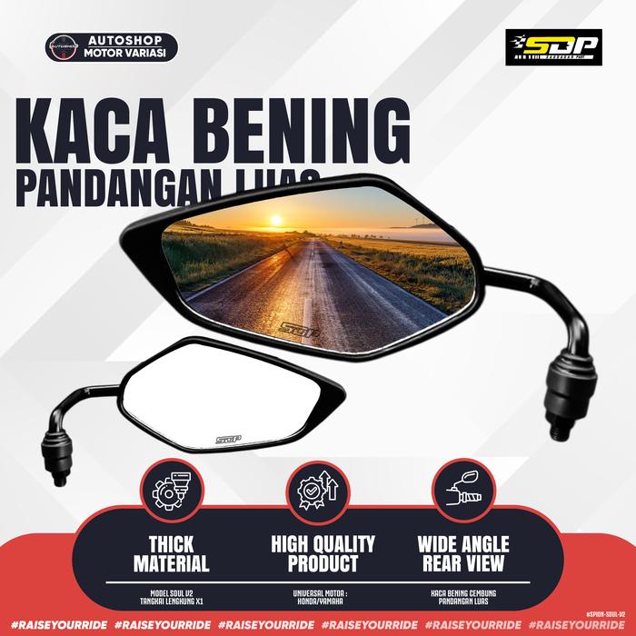 Tingkatkan keamanan dan gaya motor Anda dengan Spion Soul Standart berkualitas premium. Dibangun dengan tangkai X1 yang kokoh dan tahan lama, spion ini memberikan sudut pandang terbaik untuk memantau kondisi jalan. Kaca mirror grade A menghasilkan pantulan jernih tanpa distorsi, serta dirancang untuk meminimalkan titik buta (blind spot), meningkatkan keselamatan Anda saat berkendara di tengah lalu lintas padat.
