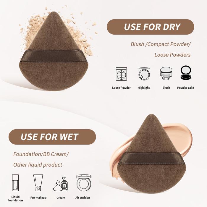 Spons bedak segitiga ini dirancang untuk memberikan hasil makeup sempurna dengan tekstur super halus dan lembut. Praktis & multifungsi, cocok untuk bedak tabur, bedak padat, dan foundation. Ujung runcing memudahkan aplikasi di area sulit seperti sudut mata dan hidung.