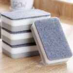 - Hindari penggunaan sisi kasar (scouring pad) pada permukaan yang mudah tergores (contoh: teflon, permukaan anti-gores, acrylic).