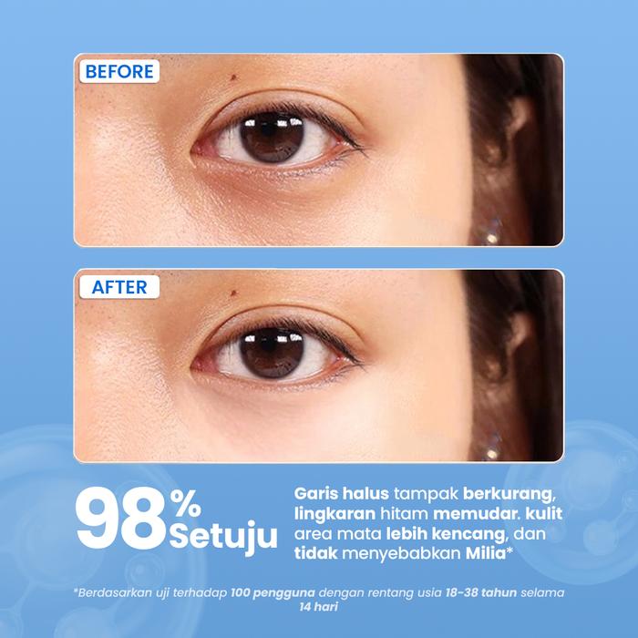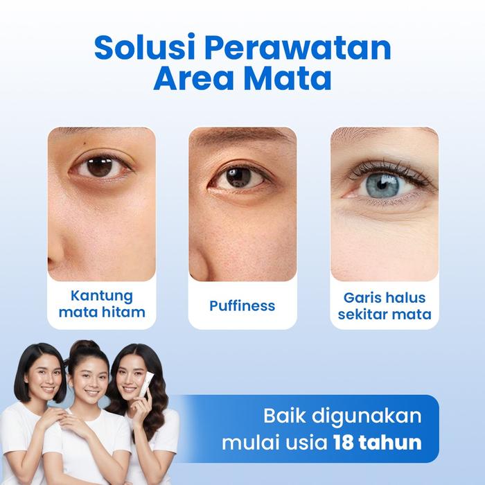 | Manfaat Utama | Mencerahkan lingkaran hitam (mata panda), mengurangi kerutan & garis halus, mengembalikan kesegaran mata, dan melawan tanda penuaan dini. |