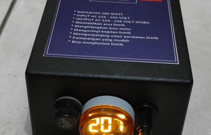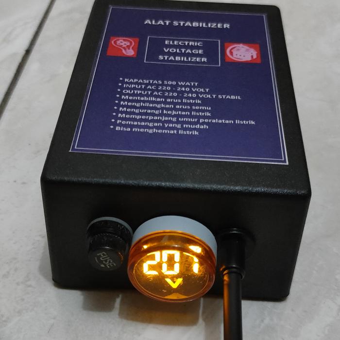 Lindungi peralatan elektronik Anda dengan Stabilizer Tegangan Listrik Plus Voltmeter! Alat ini dirancang untuk menyetabilkan arus listrik, melindungi, dan memperpanjang umur perangkat elektronik seperti AC, kulkas, TV, pompa air, dan lainnya.