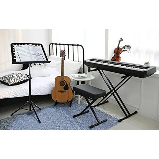 Fitur penyangga kertas yang dapat disesuaikan menjaga lembaran musik atau buku Anda tetap pada tempatnya, bahkan di lingkungan yang ramai. Kaki tripod tiga titik dengan bantalan karet memberikan stabilitas optimal di berbagai permukaan lantai, mencegah tergelincir dan menjamin keamanan partitur Anda.