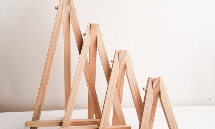 - Easel: Penopang atau penyangga yang digunakan untuk memajang lukisan, gambar, atau foto. Biasanya terbuat dari kayu, logam, atau plastik dan dapat disesuaikan ketinggiannya.