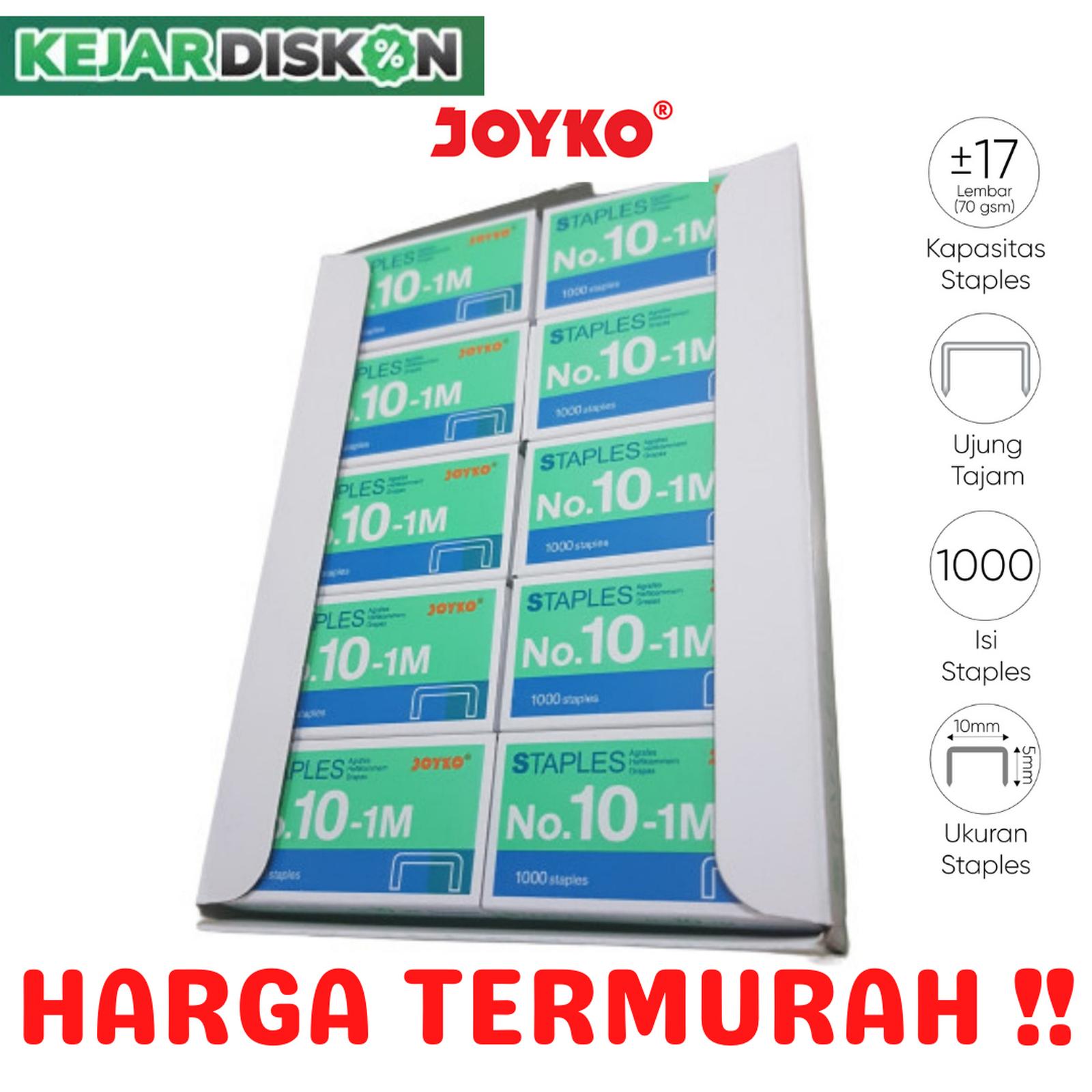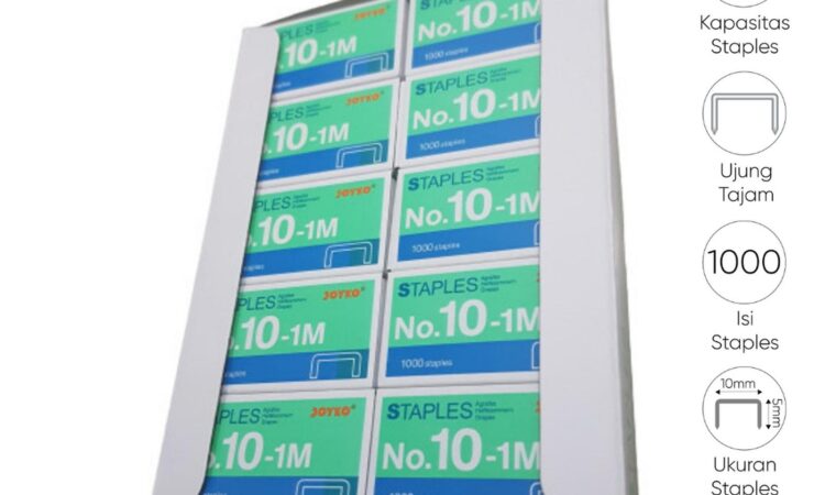 Toko kami menyediakan Staples Joyko No.10-1M dalam partai besar dengan harga termurah dan kualitas terjamin. Produk ini kompatibel untuk stapler/hekter mini dan standar, terbuat dari material baja kuat yang menjadikannya tahan lama, tidak mudah karat, dan nyaman digunakan untuk segala keperluan kantor, sekolah, atau rumah.
