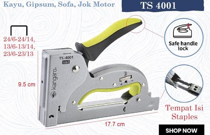 Tingkatkan efisiensi pekerjaan Anda dengan Guntacker Kangaro TS 4001! Alat tembak serba guna yang dirancang khusus untuk berbagai material seperti kayu, jok kulit motor, gipsum, karpet tebal, dan plafon. Terbuat dari material baja berkualitas tinggi yang tahan lama untuk penggunaan industri dan harian.