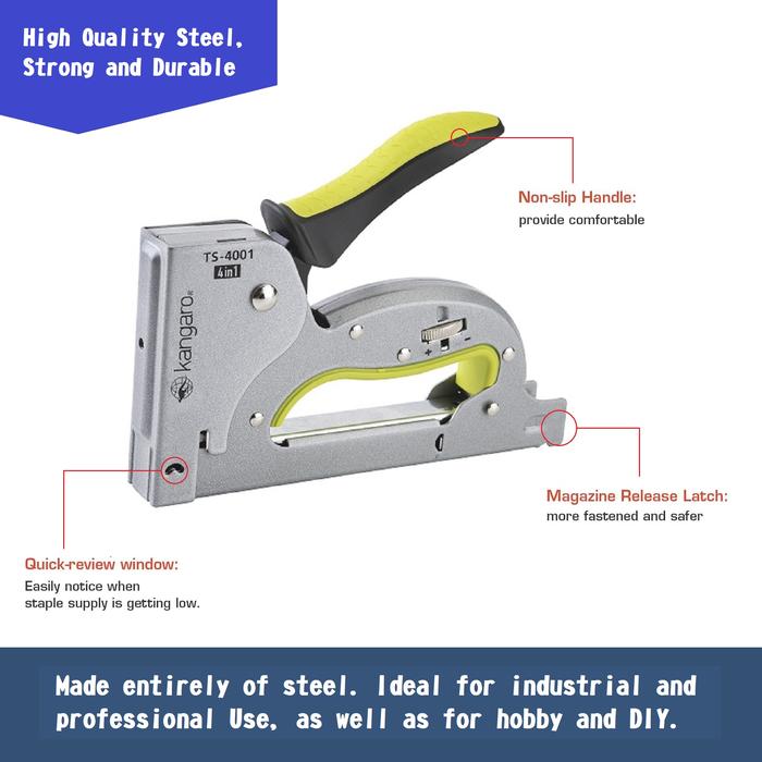 Tingkatkan efisiensi pekerjaan Anda dengan Guntacker Kangaro TS 4001! Alat tembak serba guna yang dirancang khusus untuk berbagai material seperti kayu, jok kulit motor, gipsum, karpet tebal, dan plafon. Terbuat dari material baja berkualitas tinggi yang tahan lama untuk penggunaan industri dan harian.
