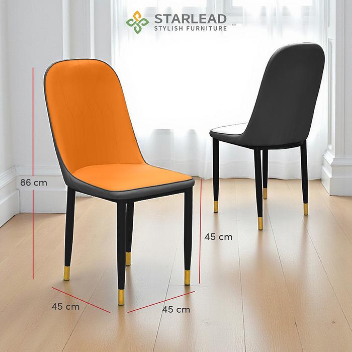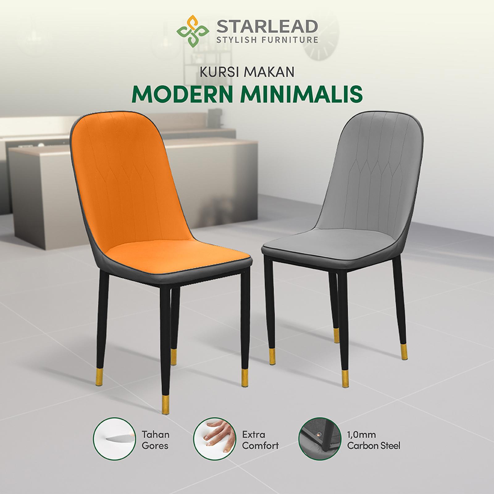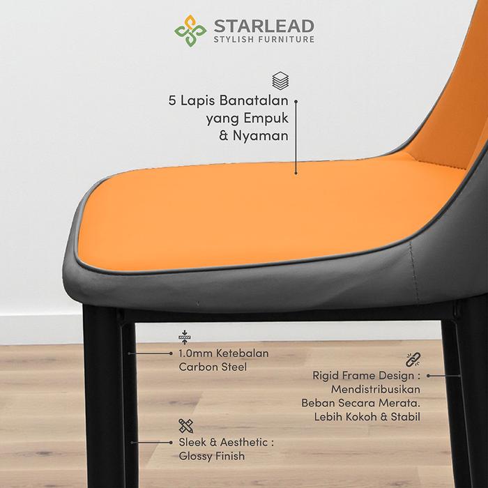 Hadirkan kesan elegan dan modern di ruang makan atau kafe Anda dengan koleksi kursi makan Starlead. Dirancang dengan sandaran berbahan kulit sintetis yang mewah, kursi ini menawarkan kenyamanan maksimal berkat bantalan duduk dan sandaran yang empuk. Frame kursi yang kokoh terbuat dari bahan berkualitas tinggi, menjamin kekuatan dan ketahanan terhadap karat untuk penggunaan jangka panjang.