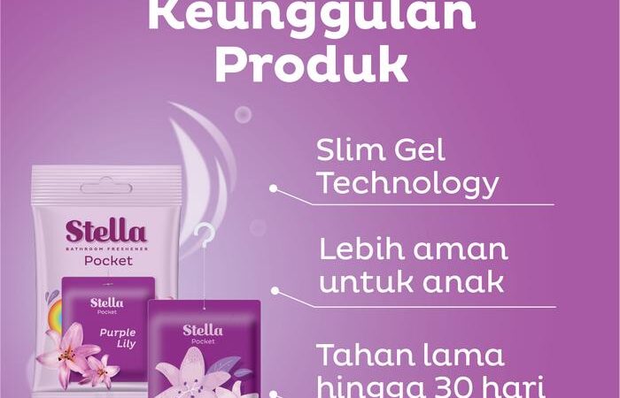 Slim Gel Technology: Teknologi gel slim yang dimiliki oleh Stella Pocket Bathroom memungkinkan pelepasan wewangian secara konsisten dan bertahan lama. Gel ini dirancang untuk menguap secara perlahan, sehingga efektif menjebak dan menetralisir partikel bau tidak sedap sekaligus menyebarkan aroma segar secara merata hingga 30 hari.
