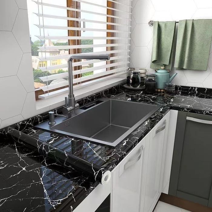 Transformasi dapur dan furnitur Anda dengan mudah dan cepat! Sticker dapur kami terbuat dari bahan vinyl PVC berkualitas tinggi dengan motif marmer granit yang elegan dan realistis. Dengan lebar 60 cm dan panjang 3,5 meter per roll, Anda memiliki cukup material untuk menutupi area yang luas.