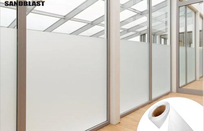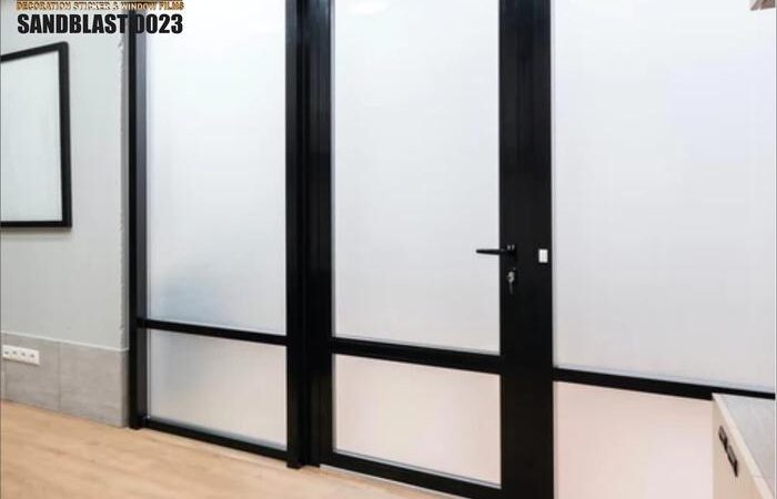 - Stiker Sandblast: Jenis stiker vinyl yang meniru efek kaca es (frosted glass) yang biasanya dihasilkan dari proses sandblasting. Stiker ini tembus pandang (transluscent) sehingga memberikan privasi tetapi masih meneruskan cahaya.