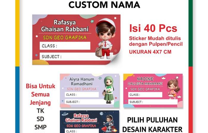| Bahan | Stiker HVS Premium, mudah ditulis dengan ballpoint (sudah berperekat, tinggal tempel) |