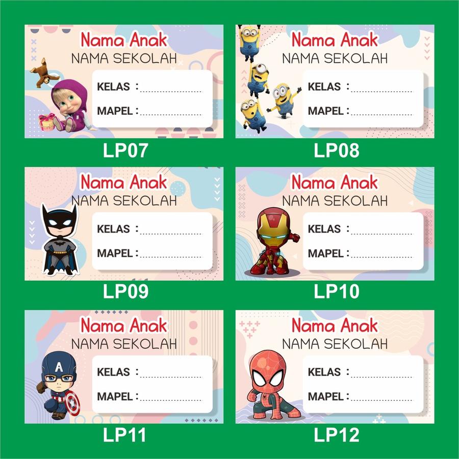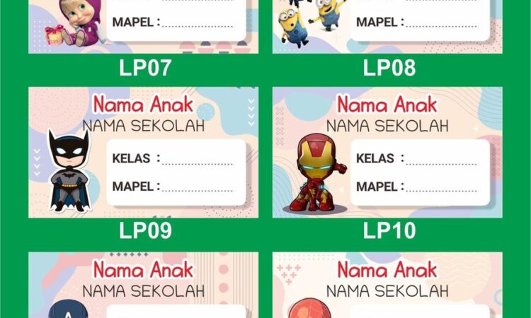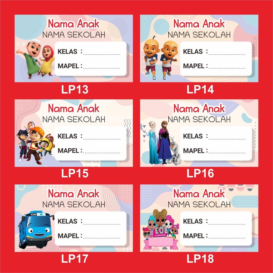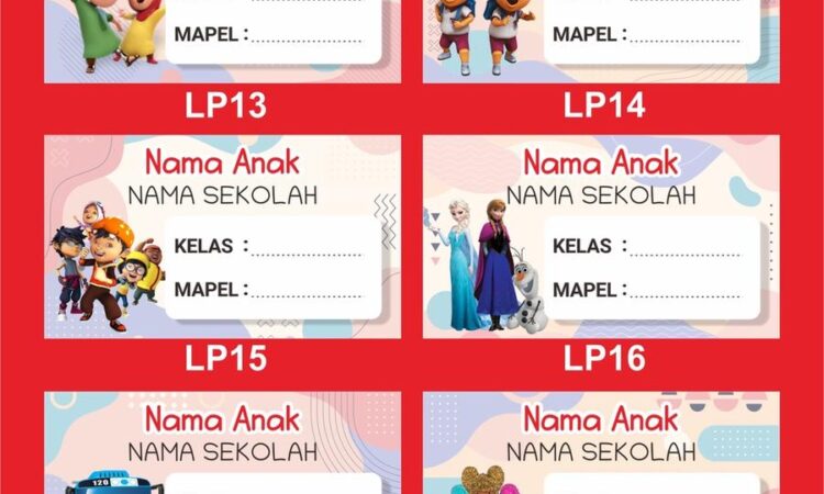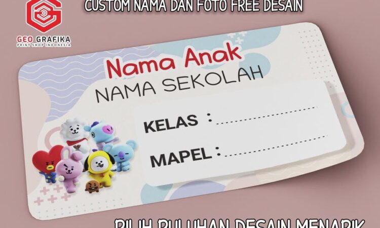 | Bahan | Stiker HVS Premium (mudah ditulis ballpoint, lem sudah terpasang) |