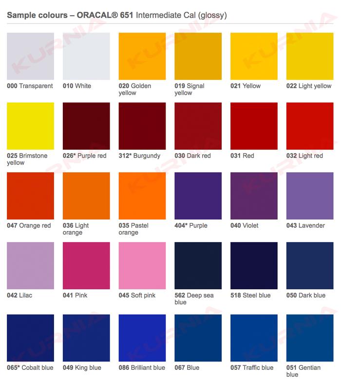 - Oracal 651: Merk dan seri khusus dari bahan vinyl calendered bermutu tinggi yang dikenal dengan kelenturan dan daya tahannya untuk aplikasi dekoratif dan komersial.