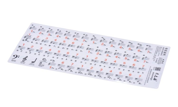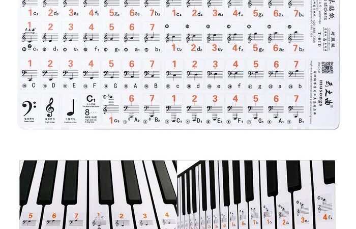 - Notasi Balok (Sheet Music): Sistem simbol musik yang ditulis di atas garis-garis paranada (staff) untuk merepresentasikan nada, ritme, dan dinamika suatu lagu. Stiker ini membantu pemula menghubungkan posisi tuts dengan simbol notasi tersebut.