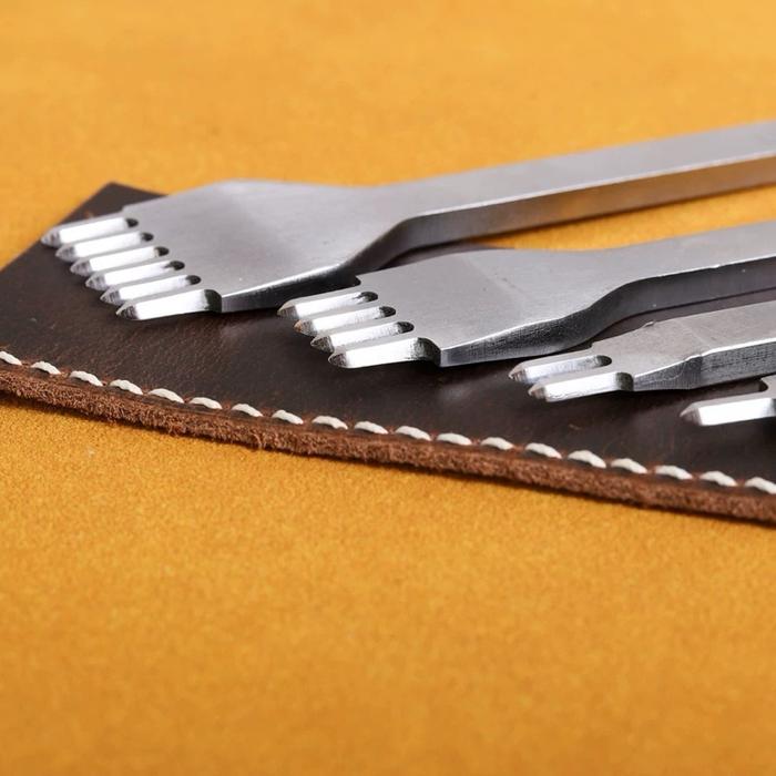 Alat pelubang kulit berkualitas tinggi untuk proyek leathercraft Anda! Set ini terdiri dari 4 punch dengan konfigurasi berbeda, memudahkan pembuatan lubang jahit yang rapi dan presisi.