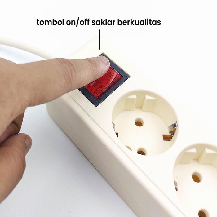 Fitur lengkap termasuk saklar on/off dengan indikator lampu, memudahkan Anda mengontrol aliran listrik tanpa perlu mencabut colokan. Produk ini memiliki kapasitas maksimal 10 Ampere / 250 Volt dan telah bersertifikat SNI, sehingga terjamin keamanan dan daya tahannya. Stop kontak ini tahan panas dan sangat cocok untuk penggunaan sehari-hari yang berat.