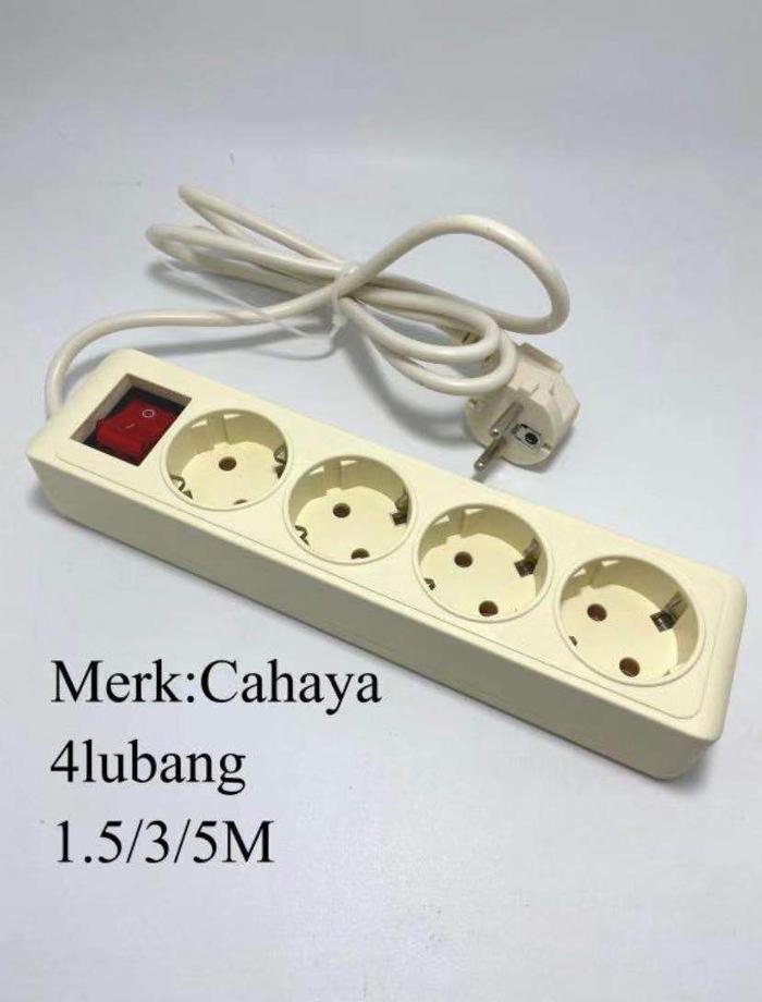 | Konfigurasi | 4 lubang colokan dengan kabel panjang 5 meter, dilengkapi saklar ON/OFF dan lampu indikator. |