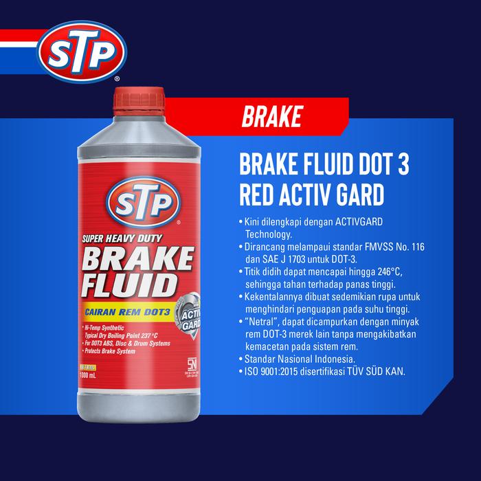 Jaga performa pengereman kendaraan Anda dengan STP Brake Fluid DOT 3. Cairan rem berteknologi tinggi ini dirancang untuk memberikan keamanan dan ketangguhan maksimal pada sistem rem mobil dan motor Anda.