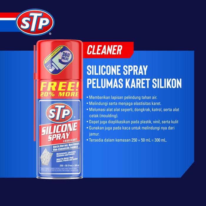 STP Silicone Spray adalah pelumas berbahan silikon dengan formula non-korosif yang membentuk lapisan tipis, tahan lama, dan tidak berbau. Produk ini efektif melindungi permukaan dari gesekan, karat, serta menghilangkan bunyi decit. Cocok untuk berbagai material seperti karet, plastik, logam, vinil, dan kaca.