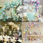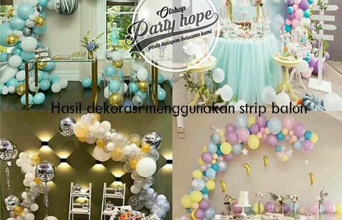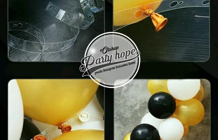 - Balloon Garland: Hiasan atau ornamen yang dibuat dari rangkaian banyak balon yang disusun memanjang atau melengkung, sering digunakan sebagai latar belakang foto atau penghias pintu masuk dan dinding.