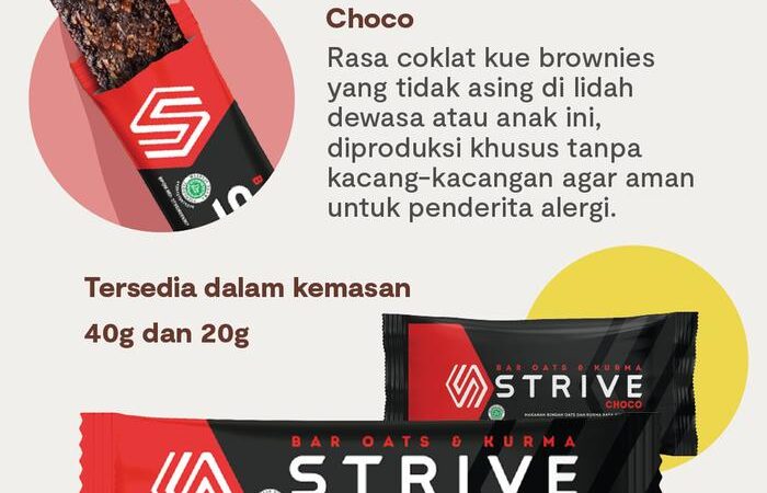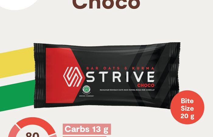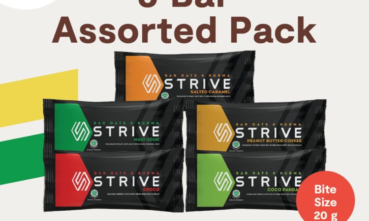 Dapatkan energi instan yang sehat dan lezat dengan STRIVE Energy Bar versi Bite Size. Satu box berisi 5 pack (@20gr), sangat praktis untuk dibawa kemanapun. Terbuat dari bahan alami pilihan seperti kurma, oats, kacang almond, dan biji bunga matahari. Produk ini dibuat tanpa gula tambahan dan bahan pengawet, menjadikannya pilihan camilan yang padat gizi dengan sekitar 200 kalori per kemasan.