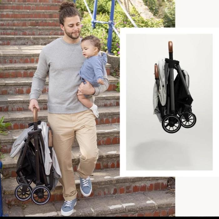 | Kemudahan & Keamanan | Rem satu sentuh (one-touch brake), pengait magnetik autoclick, roda swivel yang dapat dikunci, dan jendela peekaboo. |