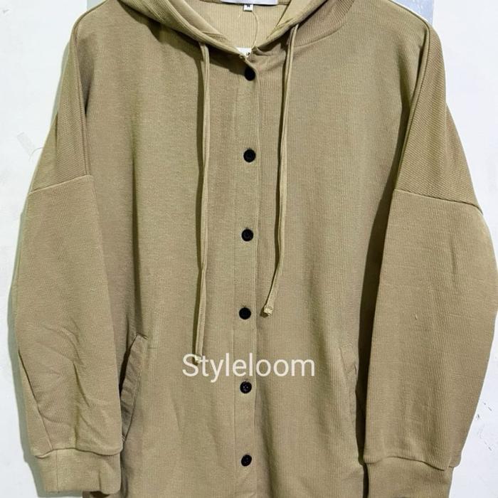 Desainnya sederhana namun elegan, dengan detail kancing di depan, saku luar fungsional, dan potongan oversize yang flowy. Model ini mudah dipadankan dengan berbagai outfit seperti celana jeans, kulot, atau rok. Cocok untuk gaya streetwear maupun casual chic. Bahan stretchy-nya membuat hoodie ini nyaman untuk berbagai bentuk tubuh, termasuk jumbo size.
