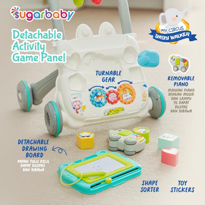 Sugar Baby My Circus Push Walker (Cirwalker) adalah alat bantu jalan bayi yang dirancang khusus untuk mendukung si Kecil dalam tahap belajar berdiri dan berjalan. Dengan desain yang stabil, produk ini membantu menjaga keseimbangan langkah pertama buah hati Anda. Dilengkapi berbagai mainan edukasi yang dapat dilepas-pasang, Cirwalker tidak hanya melatih motorik kasar tetapi juga mengembangkan keterampilan sensorik dan merangsang rasa ingin tahu anak.